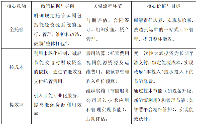 能源费用托管服务作为一种市场化的节能机制,通过引入专业节能服务公司,帮助公共机构在不增加财政负担的前提下,实现能源系统的全面升级和精细化管理。现从政策和流程角度,解析其核心意涵: